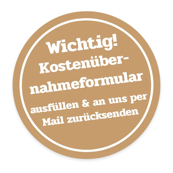 Bitte beachten Sie, dass Ihre Reservierungsanfrage erst weiter bearbeitet wird, sobald Sie uns das Kostenübernahmeformular zugesandt haben.