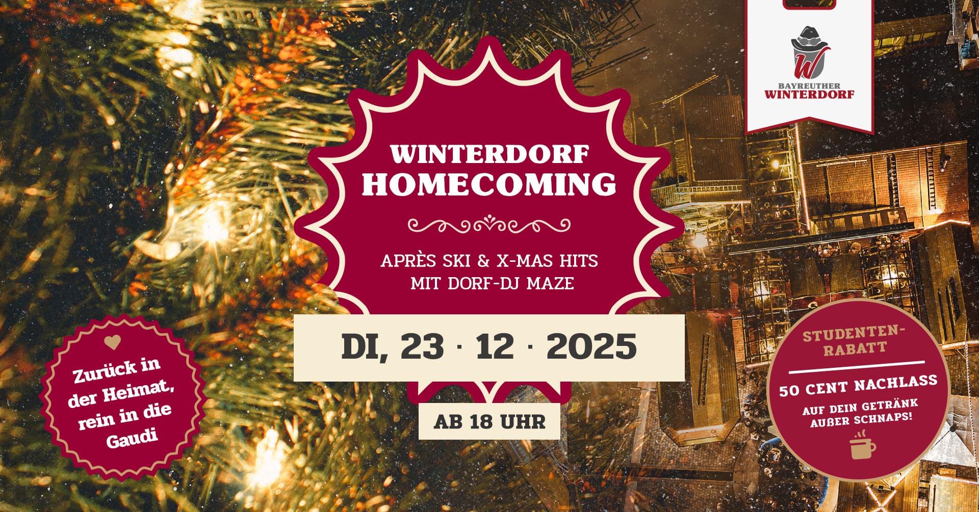 Bis zum 31. Dezember ist das Winterdorf nicht nur Garant für ein gemütliches Beisammensein, sondern lockt auch mit einem täglich wechselnde Programm aus 90’s, After Work, Après-Ski Partys und vielen weiteren Highlights jedes Jahr eine Vielzahl von Besuchern nach Bayreuth und füllt die Innenstadt mit neuem Leben. Egal ob Jung oder Alt, Groß oder Klein bei uns im Winterdorf ist von der Autogrammstunde regionaler Sportclubs über einen Kindernachmittag bis hin zur Live-Musik garantiert für jeden etwas dabei.